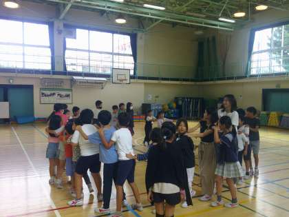 10月のキッズタイムです。今回は今年度初めて5年生が企画・運営をしました。校庭でドッジボールやバナナ鬼をやったり、じゃんけん列車、何でもバスケット、ドンじゃんけん、ハンカチ落としなどをやったり、1年生から6年生まで縦割りの班で楽しく遊ぶことができました。5年生のみなさんありがとうございました。5年生の進行も立派でした。支えてくれた6年生もありがとうございました。