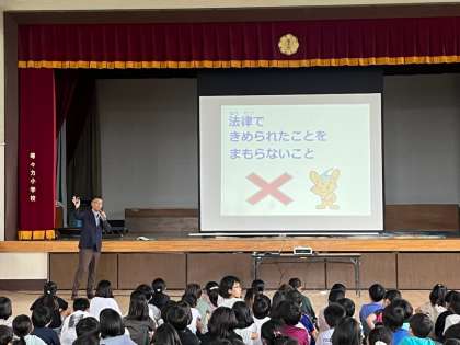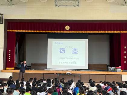 今日は玉川警察の方に講師としてご来校いただき、3、4年生対象のセーフティ教室を行いました。万引きは絶対にしてはいけないということを分かりやすくお話いただきました。学校でもルールを守ること、スポーツなどでもルールがなかったら競技にならないこと、法律の話、お店の人たちが倒産に追い込まれてしまうほど困ってしまうこと、更にやってしまった人が信頼をなくしてしまうこと、家族や関係する人が悲しむことなどを、丁寧にプレゼンを使いながらお話いただきました。玉川警察の皆様ありがとうございました。ご家庭でも子どもたちと話し合っていただけると幸いです。