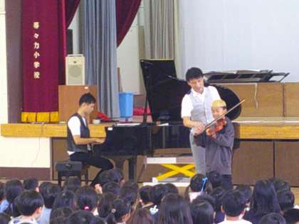 全国でコンサートを行い、小金井市の観光大使としてもご活躍され、東京オリンピック聖火リレーイベントでも演奏された。Everlyさんに今年もご来校いただき、1、2、3年生対象のコンサートを開いてくださいました。トルコ行進曲から始まり、楽器の紹介、ルパン3世、最後は校歌の演奏もしてくださりました。大切な楽器を体験させていただく場面があったり、みんなで踊ったり、歌ったり会場は大盛り上がりでした。すてきなすてきなコンサートとなりました。11月9日、10日には東京でもファミリーコンサートがあるそうですので、ご家族みなさんで行けると楽しいですね。Everlyさん本当にありがとうございました。