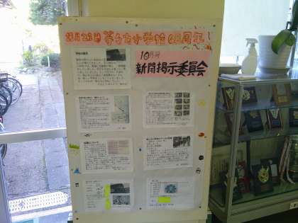 11月21日に68周年の開校記念日を迎える等々力小学校。中央昇降口脇に、新聞掲示委員会さんが作った掲示物があります。学校の誕生の歴史から、校歌の誕生、校舎の移り変わりなど、分かりやすくまとめてくれています。ご来校の際にはぜひご覧ください。
