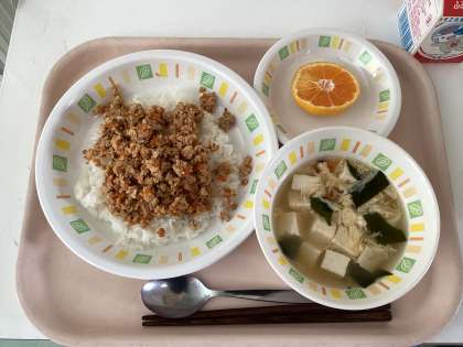 高野豆腐を水で戻して、フードカッターでみじん切りにして、野菜と挽き肉と一緒に炒め煮にして作りました。甘辛い味で、豆腐の香りや具材の旨みが染みて美味しく出来上がりました。子供たちもよく食べていました。