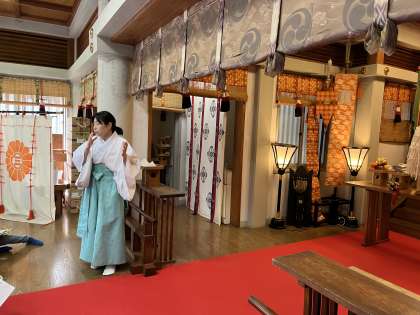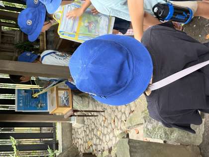室町時代から深澤に根付き、由緒ある神社の歴史を知ったり、参拝の所作を学びました。宮司さんの服装について質問をし、昔はその服装が普段着であったことを知りメモをしたりするなど、真剣に取り組んでいました。