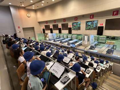 世田谷市場に来ました。まずはせりが行われるオークションルームで、お話しやビデオでお店に品物が届くまでを学習しました。その後、市場の見学をさせていただきました。世田谷市場の皆様ありがとうございました。