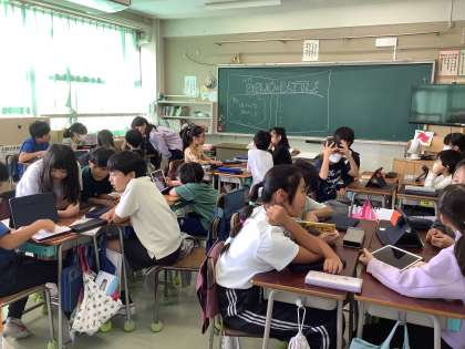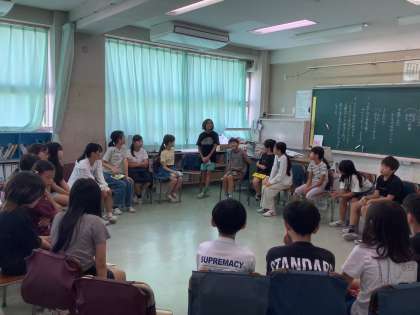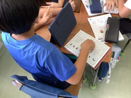 5年生は、日本語の学習でビブリオバトルを行いました。友達におすすめしたい一冊を持ち寄り、おすすめポイントを紹介しました。グループやクラスで、一番読みたくなったチャンプ本を決めました。読書の秋を楽しんでいます。
