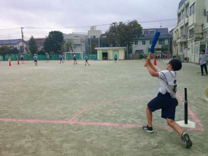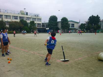 今6年生は「Tボール」に取り組んでいます。野球型のボール運動です。運動するのには適した気候になり、みんな楽しそうに取り組んでいます。ジャッジが微妙な時も折り合いをつけて相互審判でやっているのもよいです。