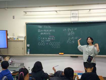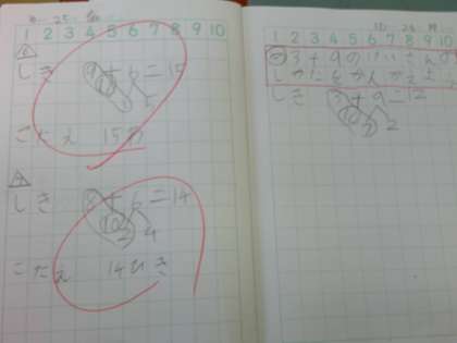 1年生の算数は「繰り上がり」がある足し算まで学習が進みました。図やブロックで考え、サクランボ式など、どうしたら正しく計算できるのか考えました。