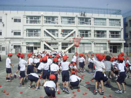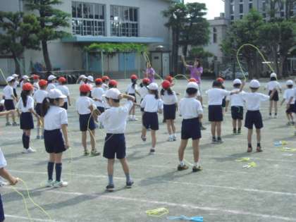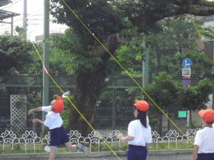 1〜3年の各学年が校庭で体力づくりに励みました。