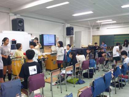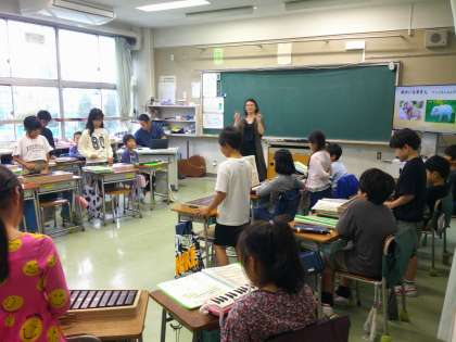 3年生、5年生の音楽の合奏の場面です。クラスのみんなで音を合わせ、一つの曲になったとき、子どもたちはとても嬉しそうです。一緒に練習をしたり、表現の仕方を相談したりして完成した曲だからですね。音楽でも協働的な学びができています。