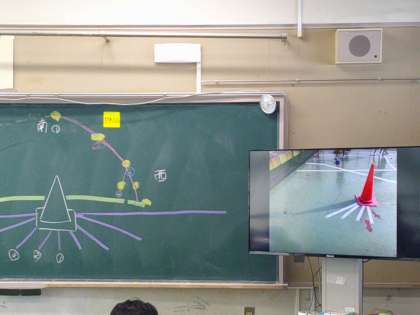 太陽と地面の様子について学習している3年生。今日の問題は「なぜかげがのびたのだろう?」です。時間が経つとかげが短くなったり、長くなったりする様子からこの問題ができました。みんなしっかりと予想し、これから問題を解決するための観察方法を考えていきます。