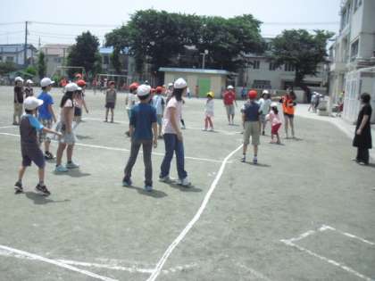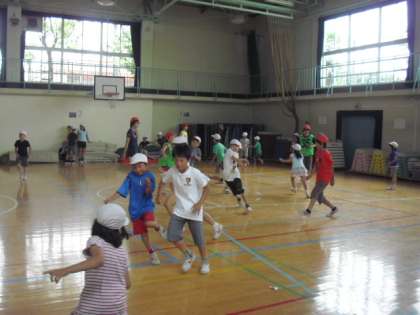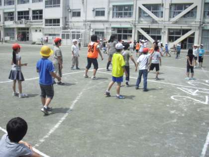 中休みの時間にキッズタイムがありました。体育館や校庭でいろいろな学年の子どもが混ざって遊びました。