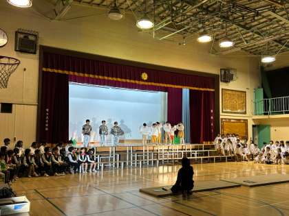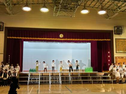 1年生の通し練習です。1年生らしく元気に演技をすることができています。最後まで通すことができたので、あと1週間、セリフ、動き、待っている時、歌声など、より良い演技ができるように頑張っていきます。とってもかわいくてすてきなお話ですので、楽しみにしていてください。