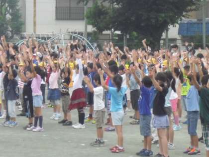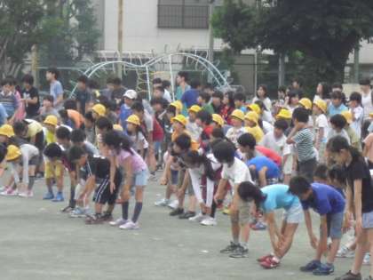 月に一度のペースでラジオ体操に取り組んでいます。朝の時間に参加自由でやっています。朝からたくさんの子が集まってきます。健康のために体操はよい取組になっています。