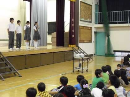 全校集会で東日本大震災の募金のよびかけ 東深沢中生徒会
