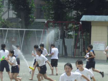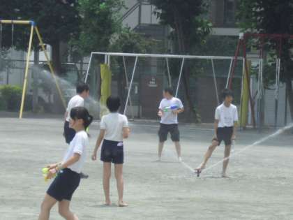 校庭で楽しそうに友達とたわむれる姿がありました。気持ち良さそうでした。