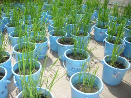 3年生が植えたヒマワリが、大きくなってきました。5年生の稲も背丈が伸びました。1年生の朝顔がきれいな花を付けていました。