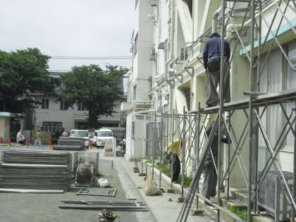 学校は、夏休みに入りました。子どもたちが教室にいないとさみしさを感じます。でも、夏休みの行事もたくさんあります。子どもたちの様子を紹介していきます。今日は、水泳、わくわくスクールに参加した子どもたちもたくさんいました。図書室で本を読む子どももいました。図書ボランティアの皆様、ありがとうございます。また、夏休み期間中には、いくつかの工事もあります。現在は、水道直結化の工事を行っています。2学期には冷たいおいしい水が飲めるようになる予定です。給食室も長い休みを控えて、大掃除です。