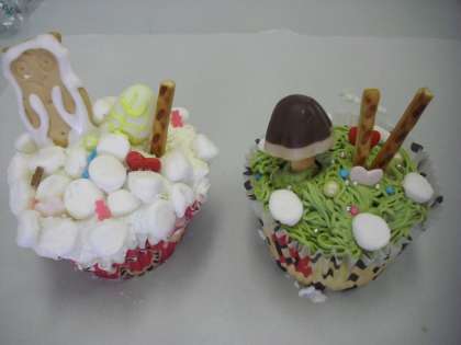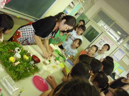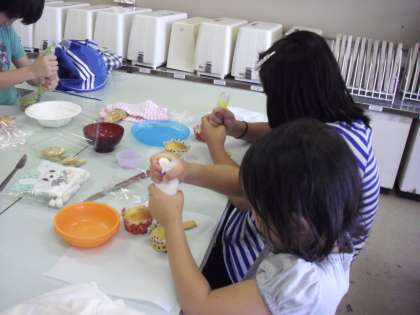 とても人気のあったスイーツデコ・・・抽選の結果20名の子どもたちが参加しました。カップケーキの上にアイシングでデコレート。かわいいかわいいスイートが完成しました。あまりにかわいくて「食べるのがもったいないなあ」とつぶやいている子がたくさんいました。