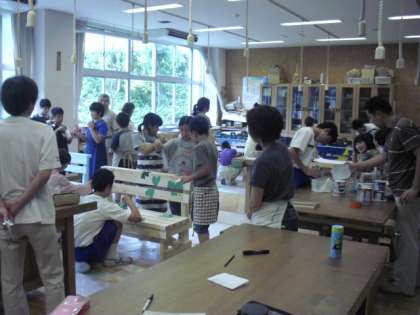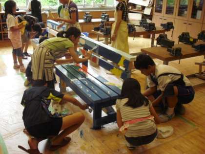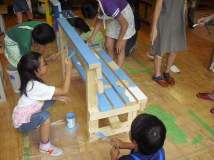 小中の児童と生徒のチームによる作成で、4つのベンチが完成しました。