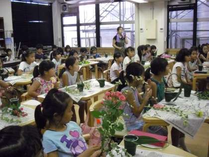 例年、わくわくスクールで大好評のフラワーアレンジメントの講座に今年もたくさんの子どもたちが参加してくれました。素敵なアレンジメントができあがり、子どもたちは、大切に自分の家に持って帰りました。今ごろは、それぞれのご家庭に飾られていることでしょう。