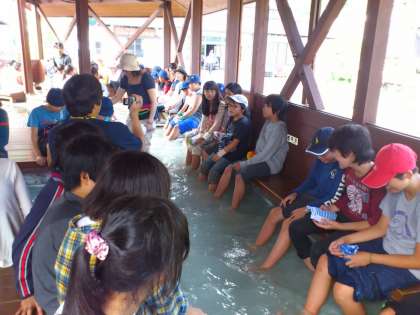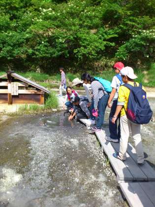 湯本源泉・あんよの湯に着きました。ハイキングも無事終了です。みんな元気に今日のメインの予定を終了しました。