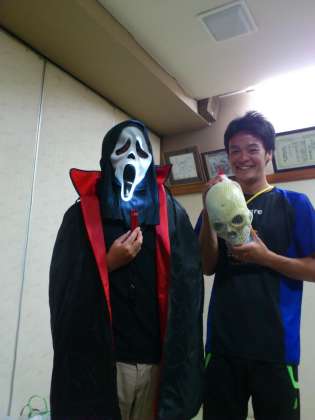 ハイキングの帰りのバスの中からシカを発見しました。写真で確認できるでしょうか。夕食後は、入浴、そしてみんなが楽しみにしている「きもだめし」です。子どもたちを迎える側も準備万端!?