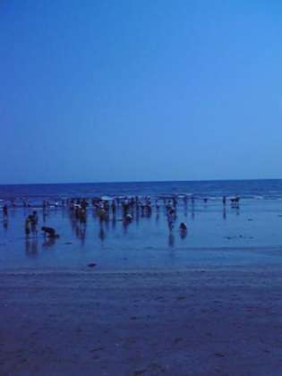 由比ヶ浜での遊びです。ビショビショになった子もいます。