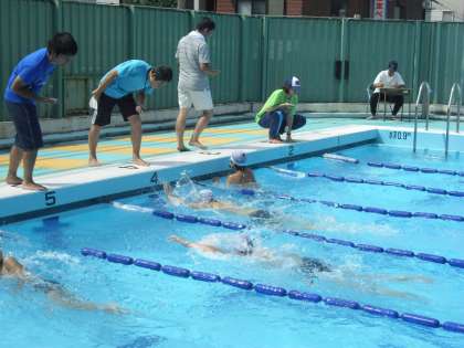 登校時に降り始めた雨も上がり、1時間遅れにはなりましたが、水泳記録会が開催されています。6年間の水泳の集大成になるこの記録会。自分の力を出し切るよう、子どもたちは一生懸命に泳いでいます。とても立派な姿です。