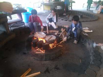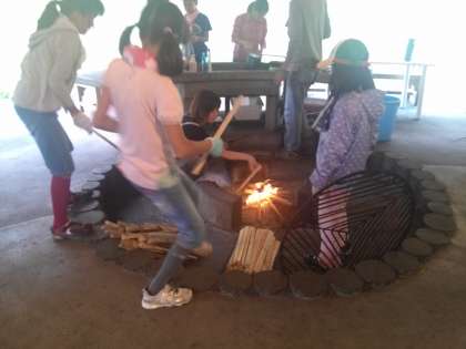飯ごうすいさんが始まりました。カレーはおししくできるかな・・・力を合わせて作っています。