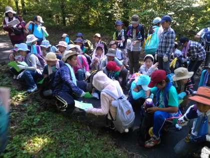 朝食をすませ、いよいよハイキングに出発です。たくさんの自然に触れ、いい汗をかきながら、ハイキングの時間を楽しんでいます。