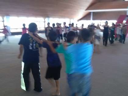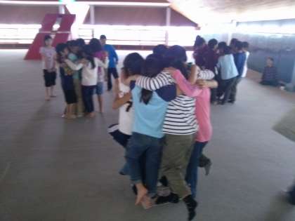 室内レクが始まりました。じゃんけん列車、猛獣がりに行こうよ、新聞のり・・・楽しいゲームで盛り上がっています。