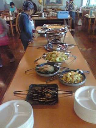 朝食の準備ができました。朝食は、バイキング形式です。
