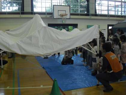 10月14日(日)、等々力小学校を会場に避難所運営訓練が行われました。三和会の皆様、玉川消防署の皆様、玉川警察署の皆様、消防団の皆様、行政の皆様、おやじの会・PTAの皆様など、たくさんの人にご協力いただきました。子どもたちも、災害時の訓練を真剣に受けていました。