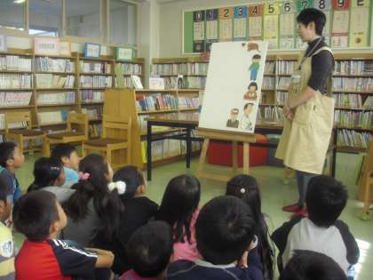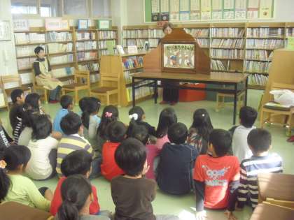 深沢図書かんの職員の方々に来ていただき、大型絵本、パネルシアター、紙芝居、素話などいろいろな形式で読み聞かせをしていただきました。子どもたちは食い入るように聞き、お話の世界に入り込んでいました。