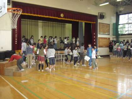 6年生が体育館で練習していました。グループに分かれて練習です。読み合わせをしているグループ。その前の打ち合わせ段階のグループ。自分の位置を確認しているグループもあました。自分たちで作り上げるという気持ちで頑張ってほしいと思います。