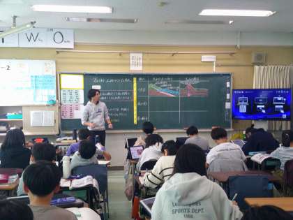 外国語の学習では、favorite place について英語で伝えあいました。理科では、地層のでき方について、火山灰からできた地層なのか、流れる水の働きでできた地雄なのか考えました。家庭科では「ミニバック」を、ミシンなどを使って作成しています。完成が楽しみですね。各クラスしっかりと取り組んでいます。