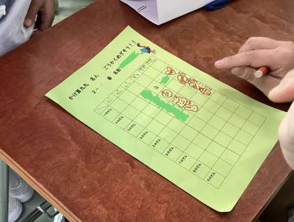 九九カードを使って言う場所、クイズのように九九を出題されて言う場所、と様々な検定の場所があり、九九を確実に言えているか確認することができました。