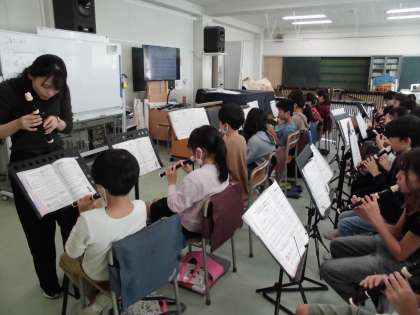 次はリコーダーで「威風堂々」の練習。低い「レ」の音がポイントです。ソプラノリコーダーで低い音を出す時は、音がひっくり返ってしまわないように、息を調節することが必要です。みんな頑張って練習していました。