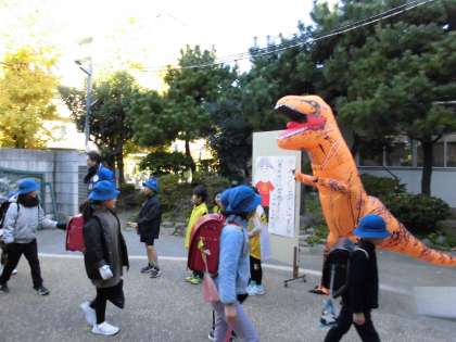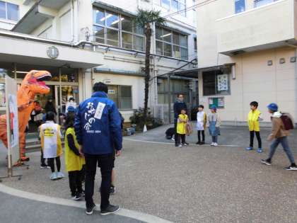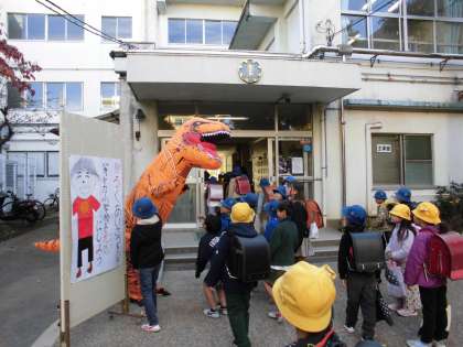 12月のあいさつキャンペーンは今日で最終日。今日はなんと、恐竜くんがあいさつ運動に一緒に参加してくれました。登校してきた子どもたちはびっくり!でもみんな笑顔になってあいさつしてくれました。「おやじの会の〇〇さんが入ってるんじゃない?」などと言っているのが微笑ましかったです。いつも子どもたちを楽しませる提案をしてくださるおやじの会の皆様。本当にありがとうございます。3年生のみなさんも1週間ありがとうございました。