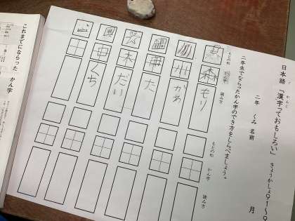 漢字って面白いでは、漢字の成り立ちについて学習しました。木や人は象形文字から想像ができましたが、鳥、歯は難しかったです。「もっと調べてみたいな。」「自分で作ってみていいですか。」と漢字ドリルや国語の教科書を確認しながら学びを深めました。