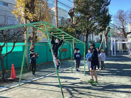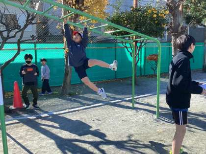 中休みに運動委員主催による等々力オリンピックが開催されました。何度目かになる等々力オリンピック、今回の競技内容は「雲梯(うんてい)トライアル」です。雲梯を何秒で渡り切ることができるか運動委員が記録をとり、上位者はお昼の校内放送で表彰されます。「我こそは!」と挑む児童の顔はやる気に満ち溢れていました。