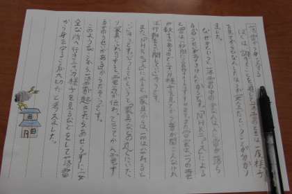 3年生は故事成語について学習しました。みんなが調べてまとめたものを1冊の「故事成語ハンドブック」にまとめて、兄弟学年である4年生に届けにきました。今度は4年生が「もしもの時に備えよう」という防災に関する調べ学習をしているので、出来上がったら本にまとめて3年生に届けに行いきます。すてきな学習交流がこのようなところでも行われています。