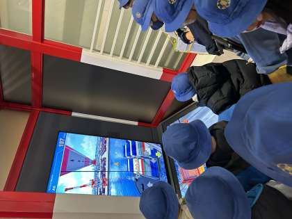 横浜みなと博物館の見学です。横浜の街の現在の様子、歴史、産業、体験シュミレーターなど様々な調べ学習をしています。