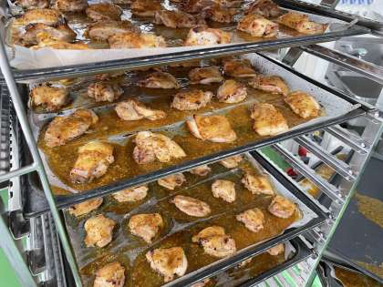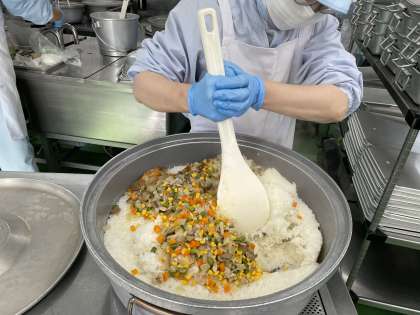 今日で2学期最後の給食でした。もうすぐ25日ということで、マーマレードチキンを焼きました。マーマレードと醤油、白ワイン、粒マスタードなどを混ぜ合わせて、鶏もも肉を漬け込んで、オーブンでこんがり焼き上げました。トマトスープは、大人気のABCマカロニと、旬のかぶとかぶの葉も使って、コトコト煮込みました。またロイロノート資料箱に2学期おたよりを載せる予定です。レシピも載っているのでぜひ見てみてください。