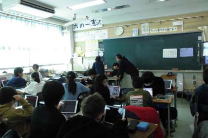 6年生の社会科は国際理解について学習しています。アメリカや中国など日本とつながりの深い世界の国々について調べています。これから各自がまとめたプレゼンを発表していきます。