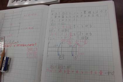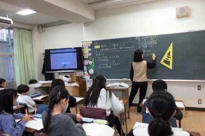 5年生は今「割合」について考えています。単位当たり量の考え方は、小学校の算数の学習の中でも難しいですが、みんな集中して、数直線などの図も使ってしっかりと考えています。算数が苦手にならないように、少人数で丁寧に学習を進めています。