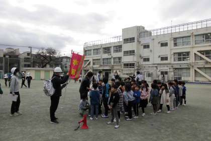 今日は地震を想定した避難訓練を実施しました。また、日ごろ新BOPを利用している児童は、新BOPの建物からの避難も訓練しました。先日も九州地方を中心に大きな地震があり、南海トラフ地震の30年以内の発生確率の割合が高くなるというニュースがありましたが、命を守る訓練をこれらかもしっかりと行っていきます。