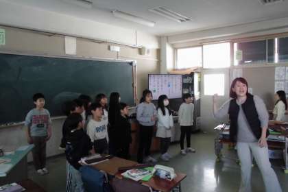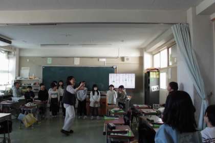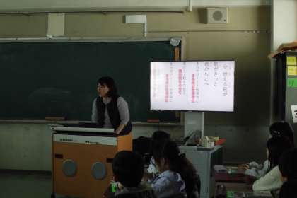 「マイバラード」を合唱しました。しかも後半は2部合唱です。下のパートは音程を取るのが難しいです。また、上のパートも下のパートにつられて音程が変わってしまうこともあります。しっかりと音をとり一生懸命に歌っていました。すてきな響きが教室いっぱいに広がりました。
