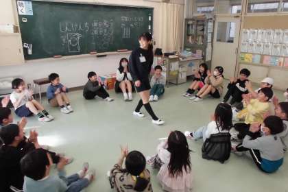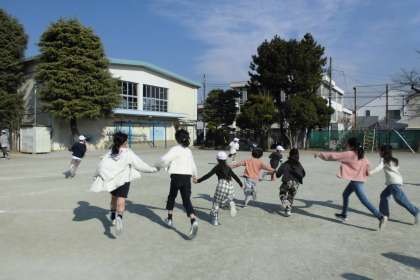今日のキッズタイムは、12月に学級閉鎖の学級があったため延期していた12月分の計画で実施しました。5年生の企画です。「手つなぎ鬼」「リーダー当て」「だるまさんが転んだ」など、低学年の子どもたちも一緒に楽しめるように、ルールや、やり方を工夫してくれています。どのグループもみんな笑顔で、縦割り班活動を楽しんでいます。