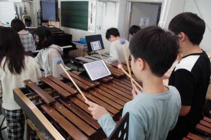 今日は「鉄腕アトム」の合奏をしています。まだ、それぞれの担当の楽器の練習をし始めたばかり。友達と相談したり、先生に教わったりしながら演奏できるように練習しています。曲の完成が楽しみですね。みんなと合わせることを楽しんで欲しいと思います。