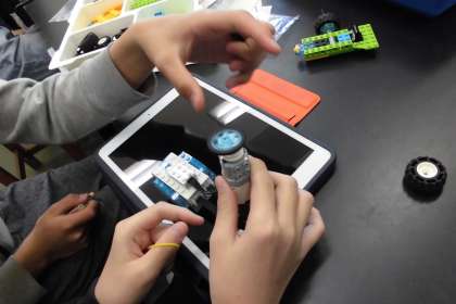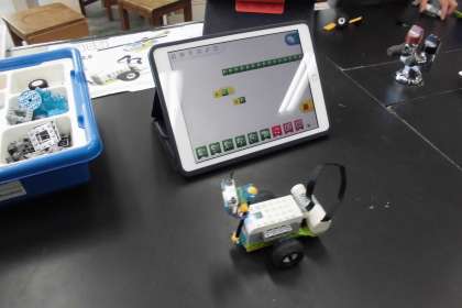 今日はプログラミングの学習をしました。プログラミングソフトのWeDo2.0で動きを設定、実際に動かすロボットは、レゴを使って作りました。思い通りにロボットを動かせた時はとても嬉しそうです。試行錯誤しながら命令を入力して楽しんでいます。